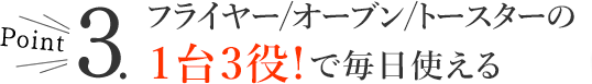 フライヤーとして以外にもオーブンやトースターとしても使用できます。