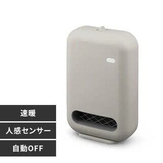 人の動きを感知して自動で運転する、人感センサー付きのセラミックファンヒーターです。「人感センサー運転」と「連続運転」を切り替えられ、温風は2段階で調整可能。電源を入れるとすぐに暖まります。