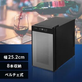 8本のワインを収納できるワインセラーです。8~18℃で温度設定可能で、ワインの種類に合わせて適温保存できます。静音性に優れたペルチェ式なので、寝室に置いても音が気になりません。