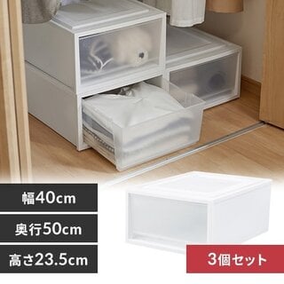 クローゼット下段収納にぴったりなチェスト。3つまで積み重ねができるため、ハンガー下のスペースを有効活用できます。チェストの幅と奥行きは変わらず、高さのみ異なる深型も便利です。収納場所によって使い分けても良いでしょう。