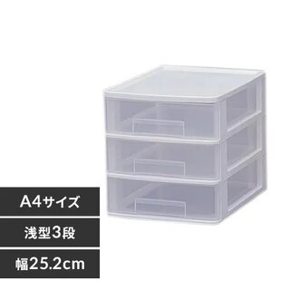 小物や書類整理に便利なデスクチェスト。クリアタイプのため見ただけで中身が分かります。ストッパー付きで引き出しが飛び抜けません。