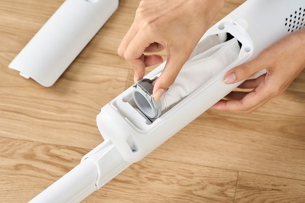 | 製品質量(付属品含まず) | 本体のみ:0.8kg、フロアヘッド・延長パイプ含む:1.6kg、充電スタンド:0.8kg | 付属品 | 充電アダプター、充電スタンド、静電モップ、モップ帯電ケース、すき間ノズル、使い捨てダストパック×25枚(1枚本体内にセット済み) |