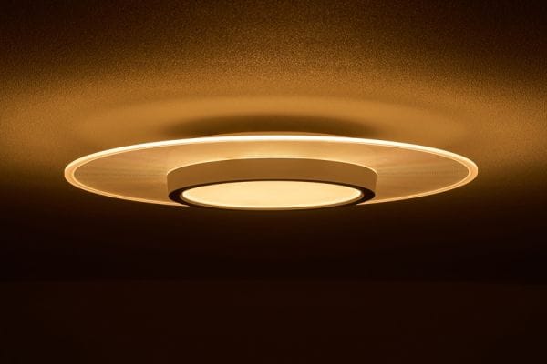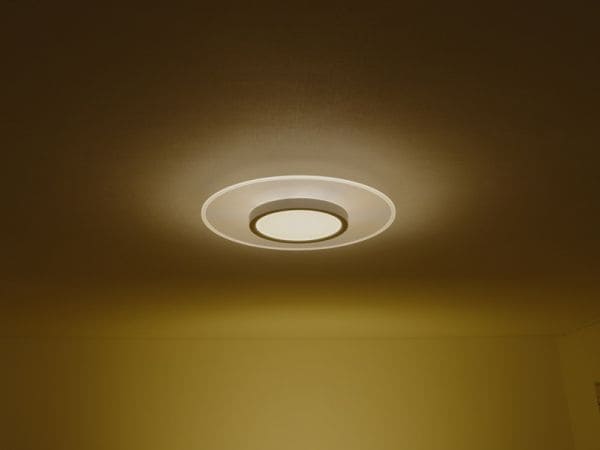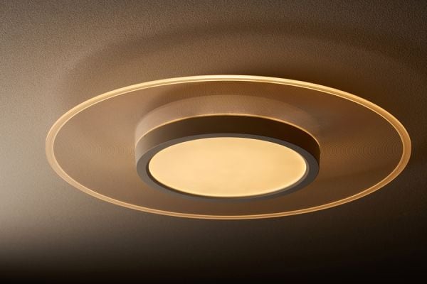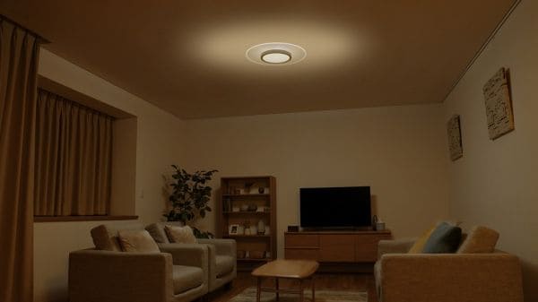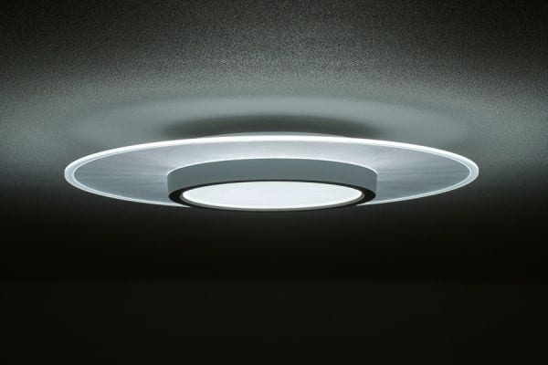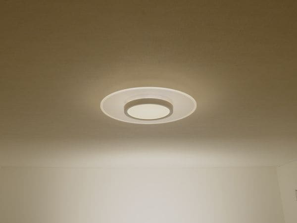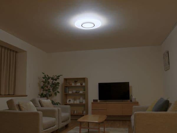 導光板によりLEDの光が均一に届き、LED特有のまぶしさがなく目に優しい光のシーリングライトです。