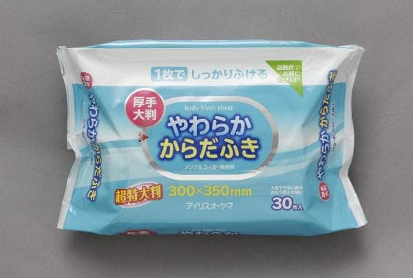 印刷する からだふき 商品特長 大きくてしっかり拭けるからだふきです。 商品仕様 大判からだふき 20枚 KRD-20 もっと読む 閉じる JAN 主要素材 4967576697668 基布素材:ポリエステル、レーヨン パッケージサイズ(mm) ケース容量 ケース入数 幅 奥行 高さ 390 100 50 26.2 L 12 個 基本仕様 成分 水、PG、塩化セチルピリジニウム、フェノキシエタノール、ブチルカルバミン酸ヨウ化プロビニル、クエン酸、クエン酸Na、EDTA-2Na、桃の葉エキス、ヒアルロン酸Na シートサイズ(約) 600×400mm 枚数 20枚入り オンラインストア ウェットティッシュからだふき WTY-B50E もっと読む 閉じる JAN 主要素材 4905009745050 水、プロピレングリコール、パラペン、塩化ベンザルコニウム パッケージサイズ(mm) ケース容量 ケース入数 幅 奥行 高さ 300 126 30 36.8 L 40 個 基本仕様 シートサイズ(約) 200×220mm 内容量 50枚入り オンラインストア 生産終了 ウェットティッシュからだふき WTY-60L もっと読む 閉じる JAN 主要素材 4905009743162 パルプ、レーヨン 【成分】水、プロピレングリコール、塩化セチルピリジニウム、パラベン、桃の葉エキス パッケージサイズ(mm) ケース容量 ケース入数 幅 奥行 高さ 210 120 68 48.0 L 30 袋 基本仕様 シートサイズ(約) 300×200mm 内容量 60枚入り 生産終了 やわらか からだふき YKF-30L もっと読む 閉じる JAN 主要素材 4905009511501 【成分】水、PG、メチルパラベン、エチルパラベン、セチルピリジニウムクロリド、PEG-60水添ヒマシ油、クエン酸Na、クエン酸【材質】レーヨン、ポリエステル、バインダー繊維(ポリプロピレン、ポリエチレン) 商品サイズ(mm ) パッケージサイズ(mm) ケース容量 ケース入数 幅 奥行 高さ 備考 幅 奥行 高さ 300 350 (1枚のサイズ) 210 140 60 22.5 L 12 個 基本仕様 シートサイズ(約) 300×350mm 内容量 30枚入り {{ resultMessage }} 結果を見る