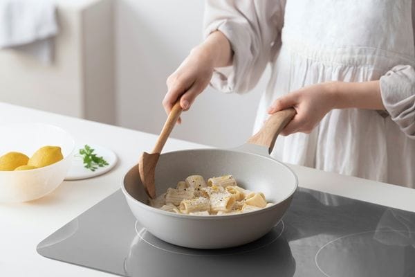 軽量で使いやすく扱いやすいフライパンです。ナチュラルカラーと木目調のハンドルで可愛らしいデザインです。