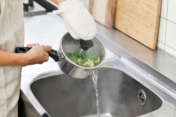 鍋に食材を入れたまま湯切りが出来る便利鍋です。