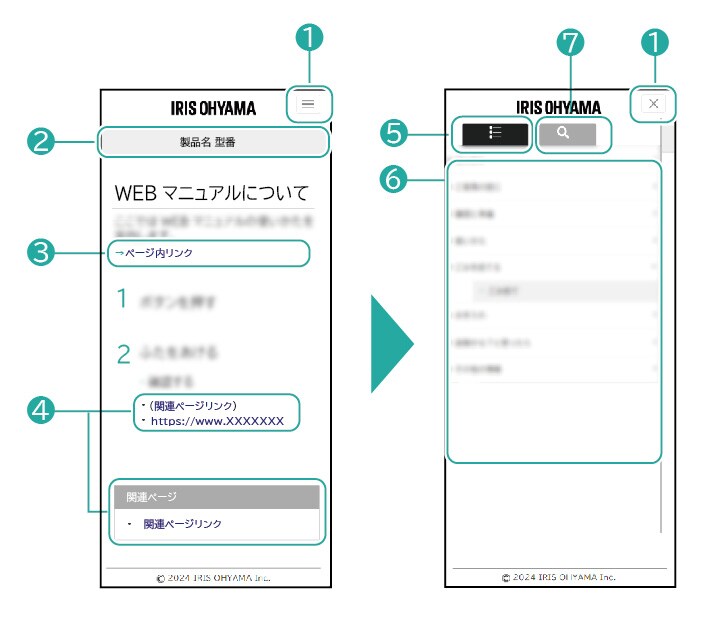 ❶ メニュー一覧/検索 切替ボタン(スマートフォンのみ)