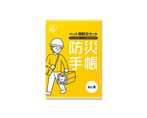 | セット内容 | ショルダーバッグ1個、ディッシュ2枚、折りたたみトイレ1個、防臭袋20枚、猫砂用スコップ1個、迷子札1個、首輪1本、猫ネット1個、自着性テープ1本、タオル1枚、ハンカチ(ガーゼ素材)1枚、アルミシート1枚、おそうじシート10枚、テープ1本、防災手帳1冊 | 追加で備えておきたいもの | ペットフード、水、薬、排泄物の処理用具、ブラシ、キャリーバッグやケージ、清浄綿、お気に入りのおもちゃ、油性ペン、猫砂など |