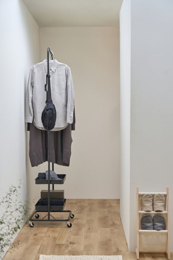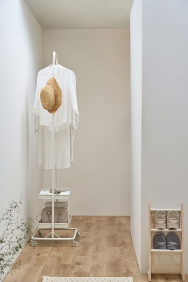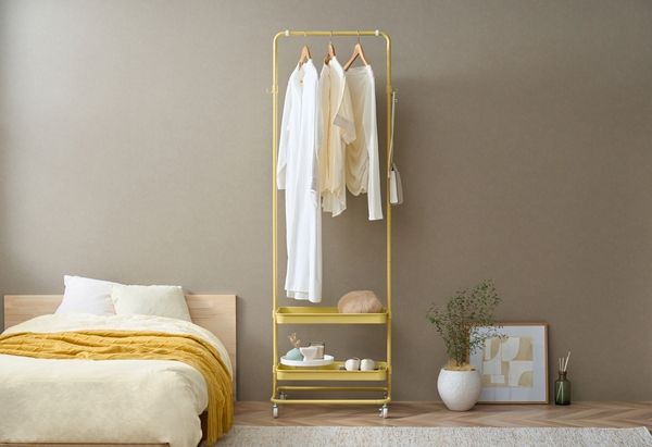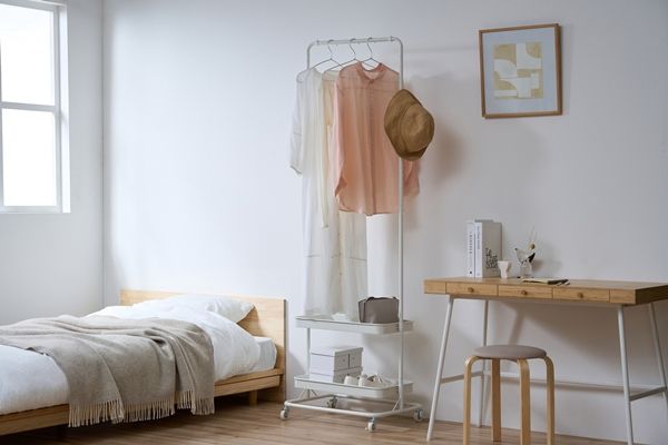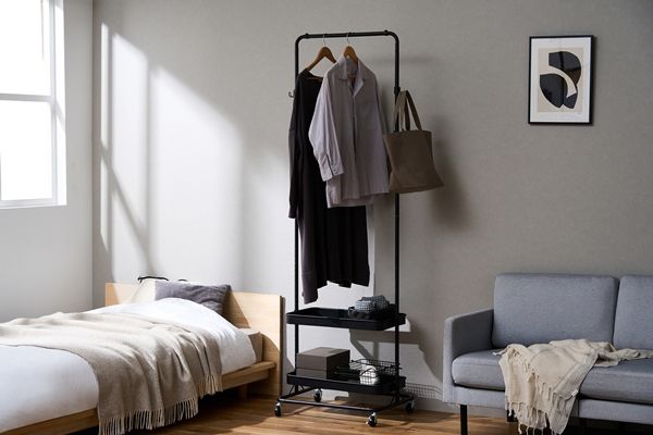 衣服も小物も収納できるハンガーワゴンです。キャスター付きで移動がスムーズです。