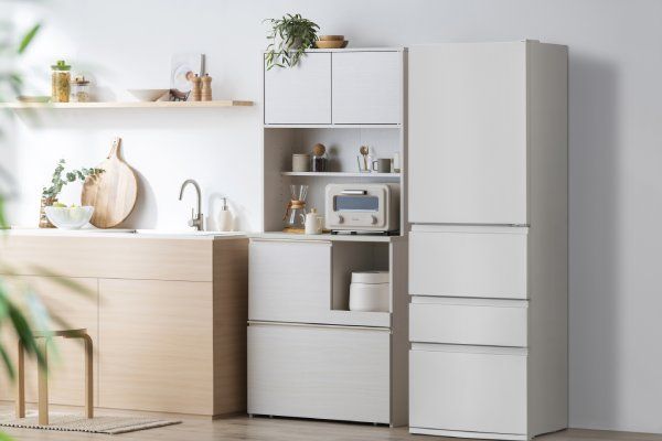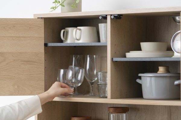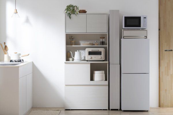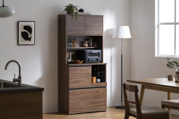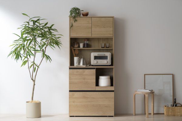 食器や調理器具、家電までたっぷり収納できるキッチンキャビネットです。