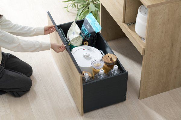 | スライド棚内寸(約) | 306×374×352mm | 扉内収納内寸(約) | 434×374×390mm | 引き出し内寸(約) | 722×337×274mm | 扉内収納の棚 | 可動棚板1枚、約32mm間隔で3段階可動 |