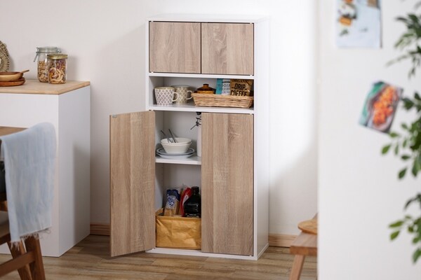 | 耐荷重(約) | 全体30kg、天板5kg、固定棚板各5kg、可動棚板5kg、底板10kg | 扉内収納内寸(約) | 上段:504×228×245mm、下段:504×228×668mm |