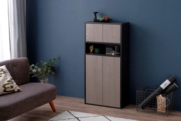 HIROBIROシリーズ ウッドリビングキャビネット WRC-540 ブラック/アッシュグレー