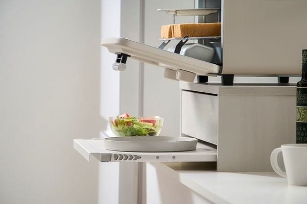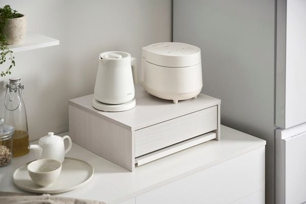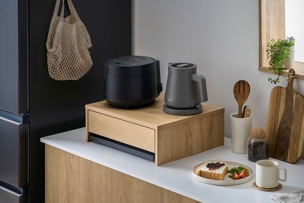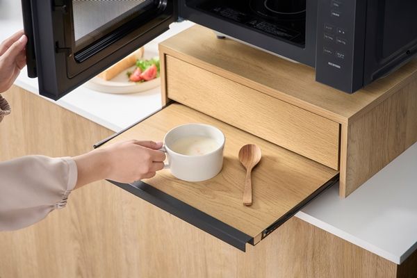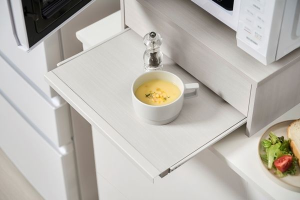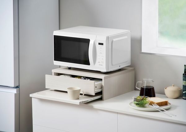 引き出しとスライド棚が付いた便利なレンジ下収納です。