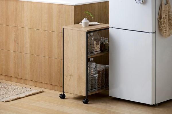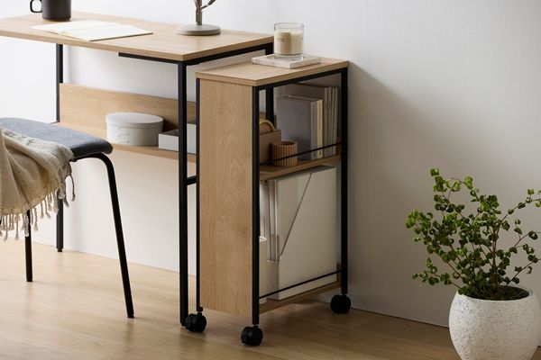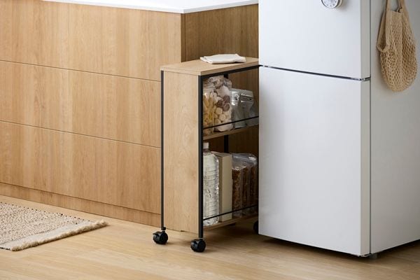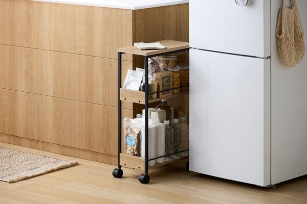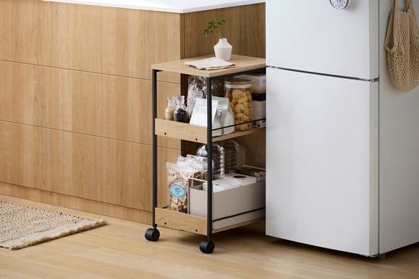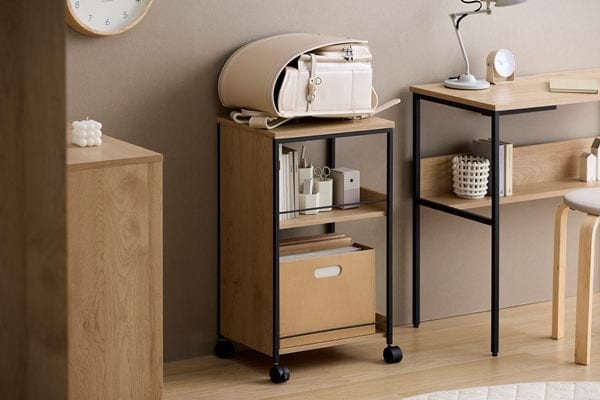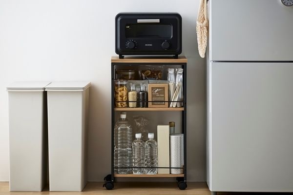 生活感を隠せるワゴンです。小物から背の高いものまで入ります。