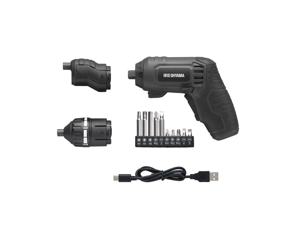 | 適用ビット | 6角軸 片頭(2面幅6.35mm) | 付属品 | ビットセット(10種類)、USB充電ケーブル(Type-A to C)×1本(約50cm) |