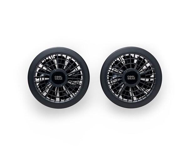 専用のコントローラーで調節でき、湿気や熱気を放出するファン付きの高機能クールウェアです。